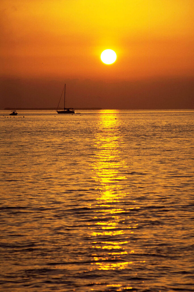 夕陽は太陽からの光が長い距離を通って人の目に届きます。途中、太陽の光は青や青緑の光をどんどん失っていき、最後にはなかなか飛び散らない直進性の高い光、つまり赤い色が残ります。だから夕陽は赤い。つまり私たちは太陽光線の中で途中の塵や埃にぶつかっても負けずに長い距離を進んできた光をきれいな夕陽として見ていることになります。